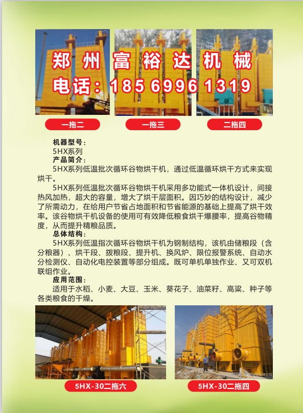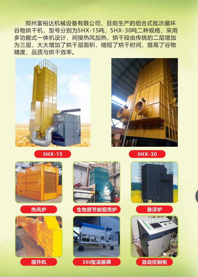 適用物料 : 該機(jī)型的進(jìn)糧口、排糧口、下糧錐、加熱層角狀盒等主要部位均采用GB不銹鋼材質(zhì),以更高標(biāo)準(zhǔn)提升了該設(shè)備的整體使用效果,不加價(jià)讓利客戶,環(huán)保除塵效果達(dá)到國家二類城市的驗(yàn)收標(biāo)準(zhǔn)等,都是該產(chǎn)品目前在市場競爭中具備的中心亮點(diǎn)。組合式烘干機(jī)適宜配備時(shí)產(chǎn)15噸以上的設(shè)備配套,本機(jī)可以和各種物料配套使用,也可以單獨(dú)烘干各種其其他品類的糧食。